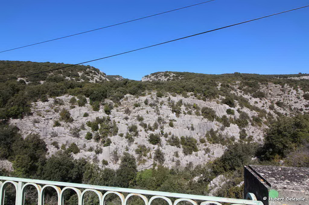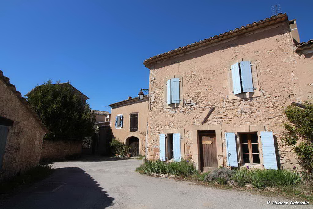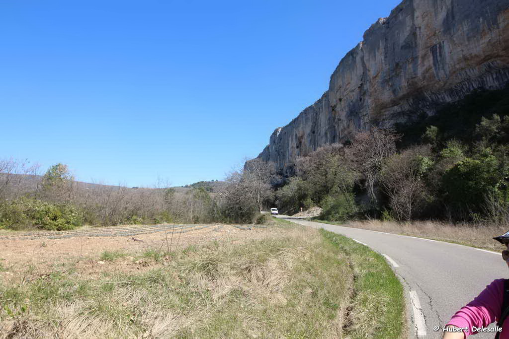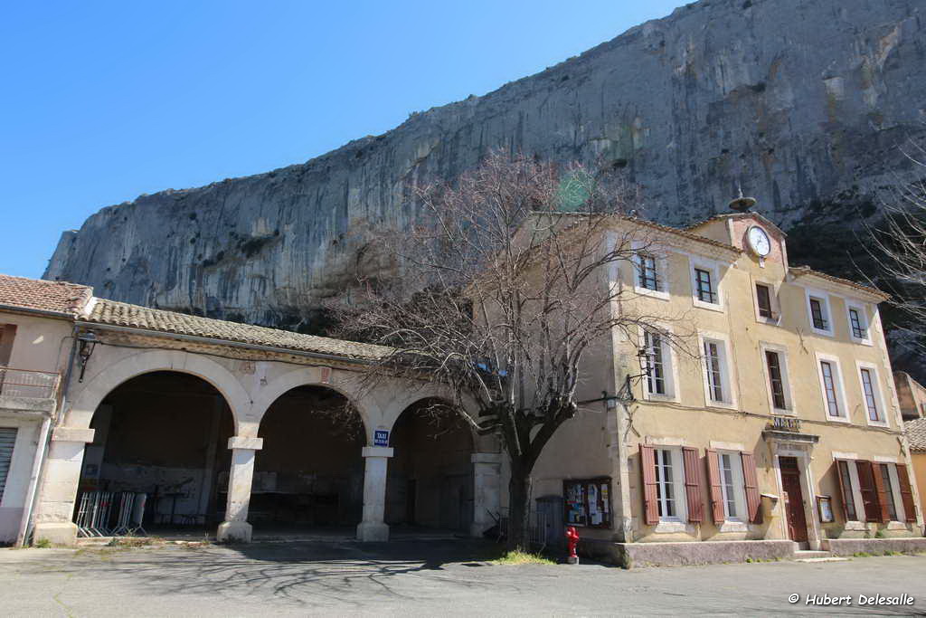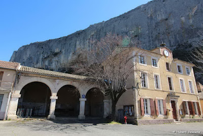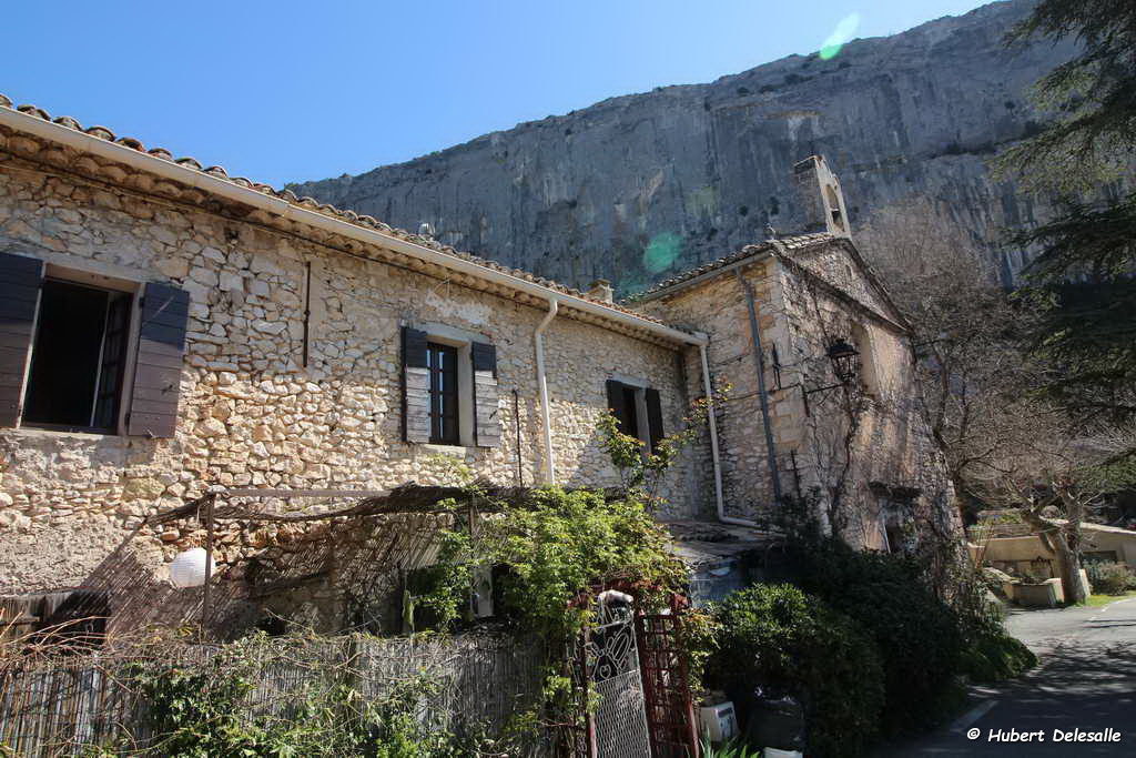 vieux village au pied de la falaise de la Madeleine (700 m de long), l’église romane de Saint-Romain.