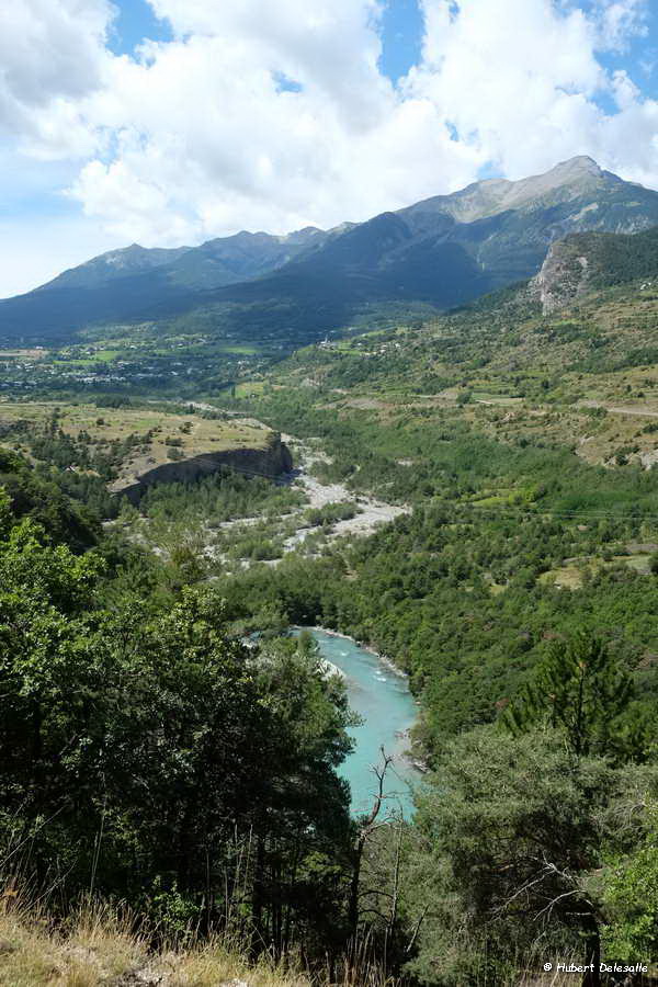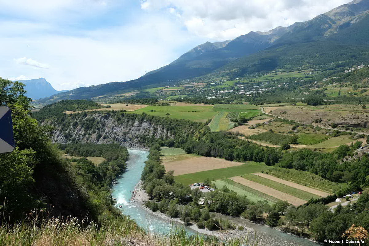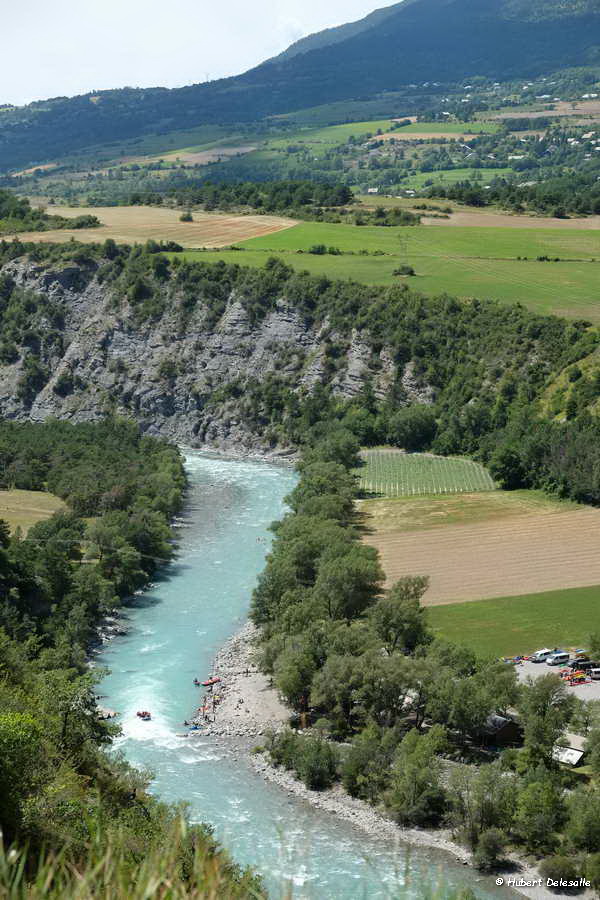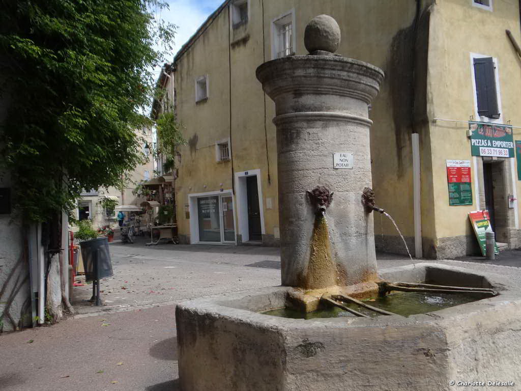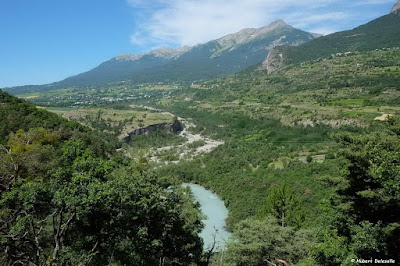 Elle irrigue l'aimable vallée que l'on domine depyus ce belvédère, avant de pénétrer dans une profonde gorge où ses eaux se perdent pour résurgir à Fontaine-de-Vaucluse.