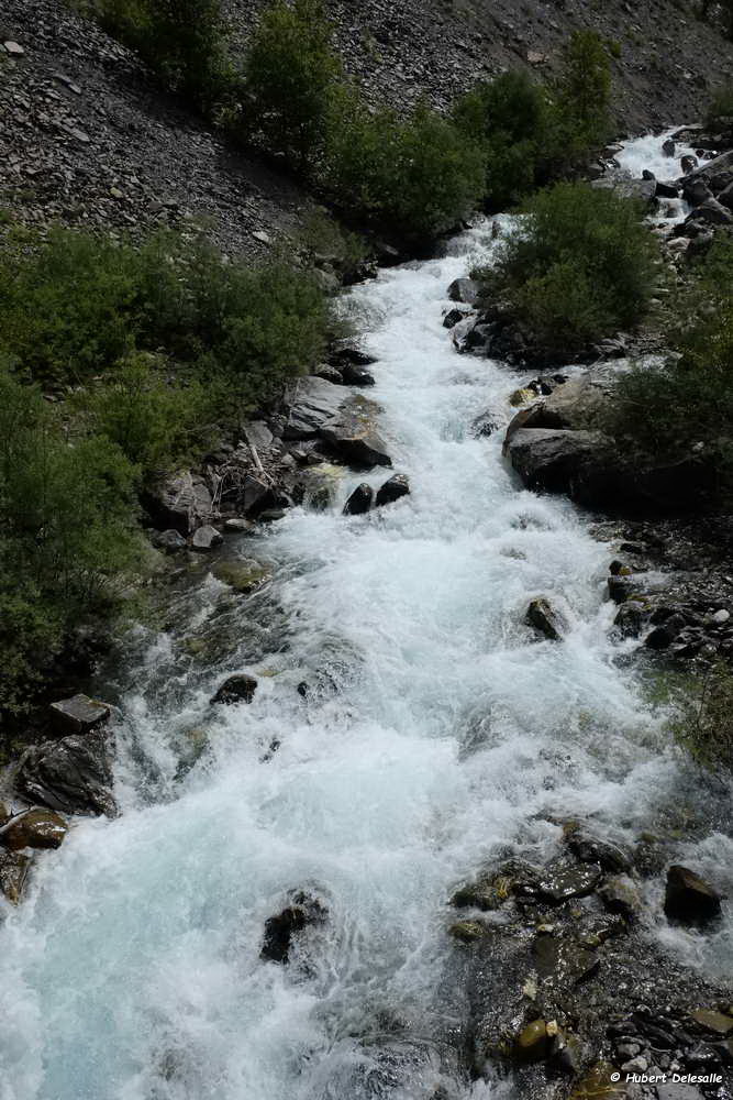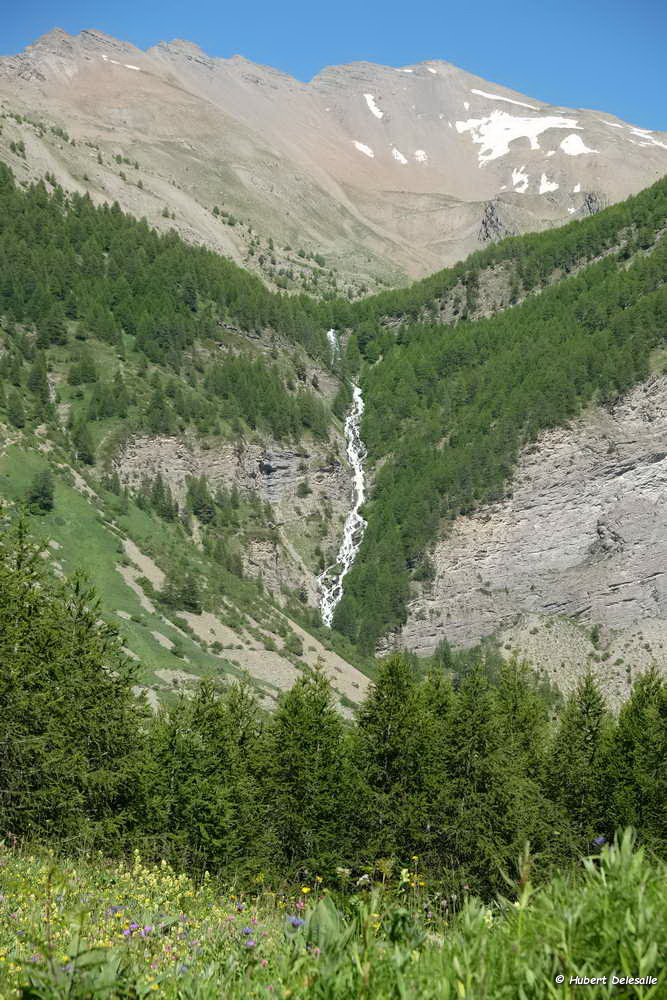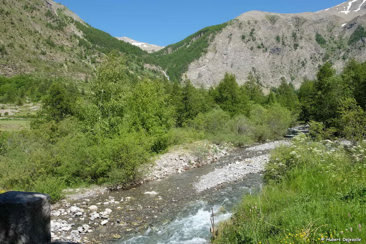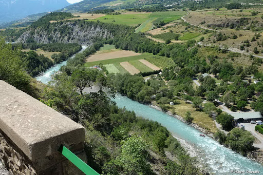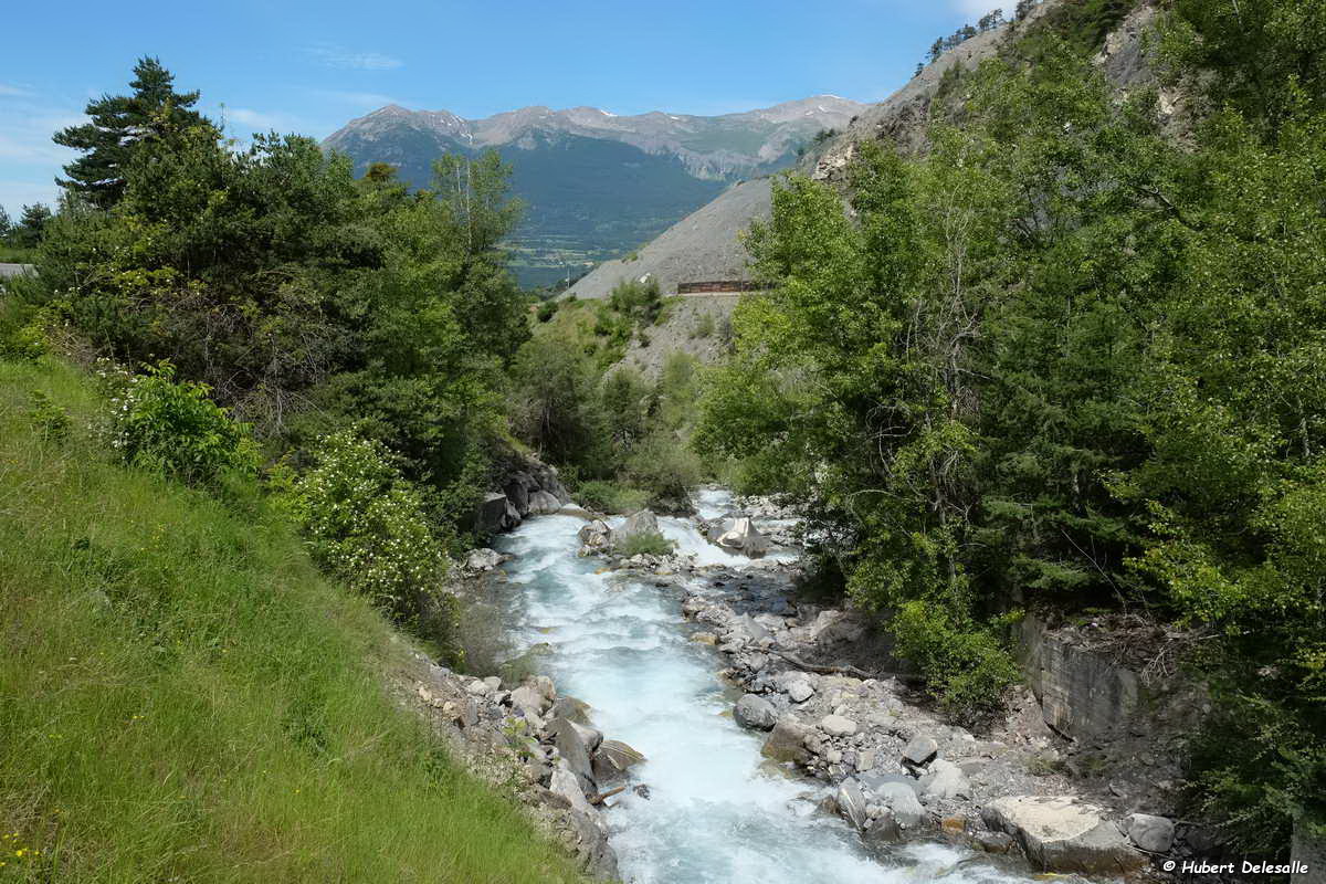 Elle irrigue l'aimable vallée que l'on domine depyus ce belvédère, avant de pénétrer dans une profonde gorge où ses eaux se perdent pour résurgir à Fontaine-de-Vaucluse.