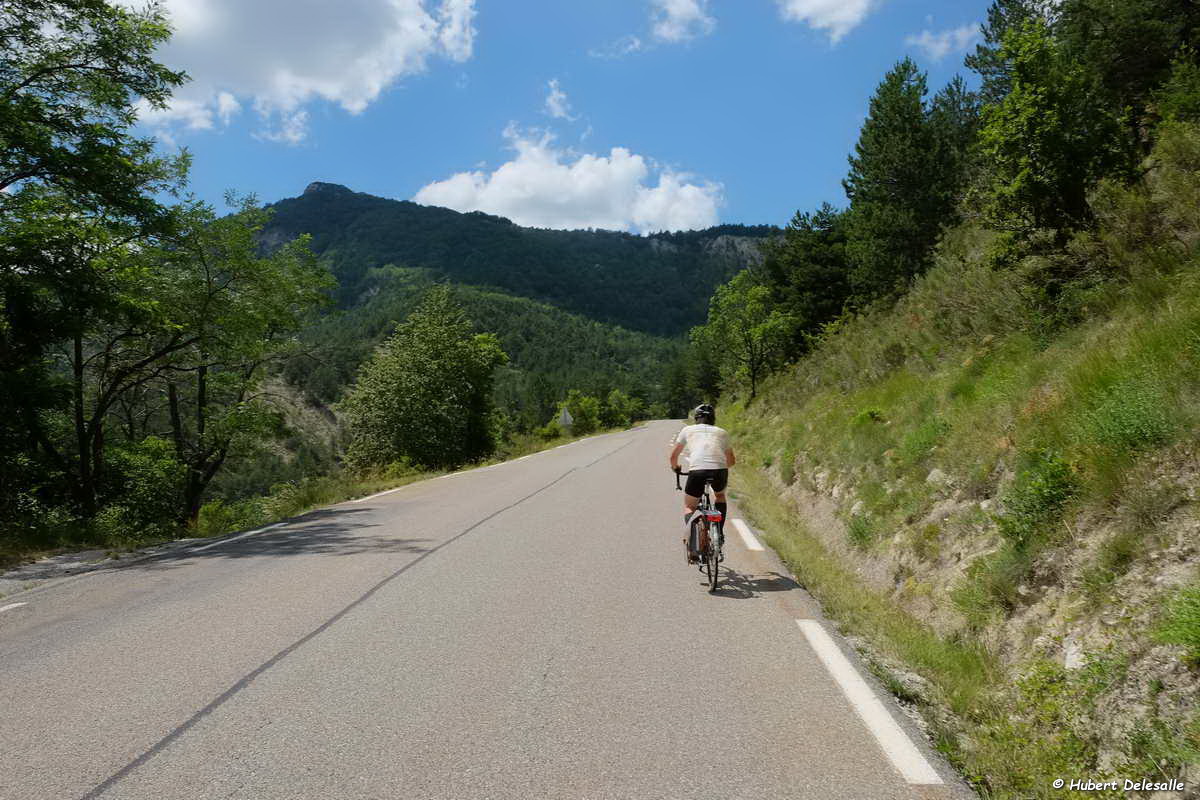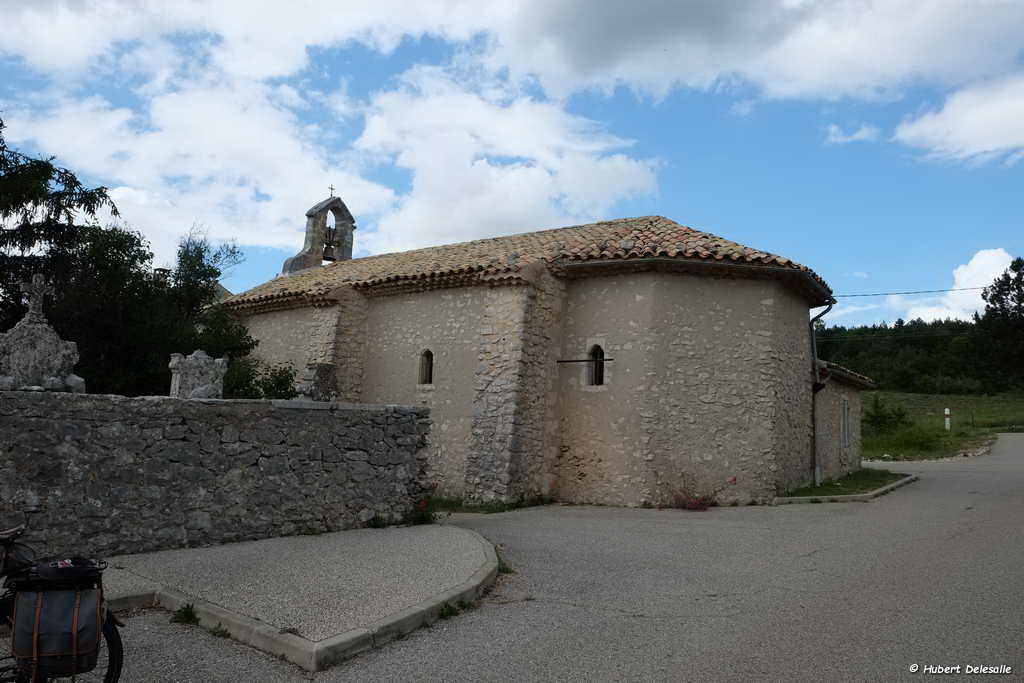 col de N.D.des-Abeilles (1000 m), je quitte la D1 juste après la belle petite chapelle pour descendre vers le hameau de La Gabelle pour remonter au nord vers le Mont Ventoux, par une magnifique petite route sinueuse parmi pis et chênes.