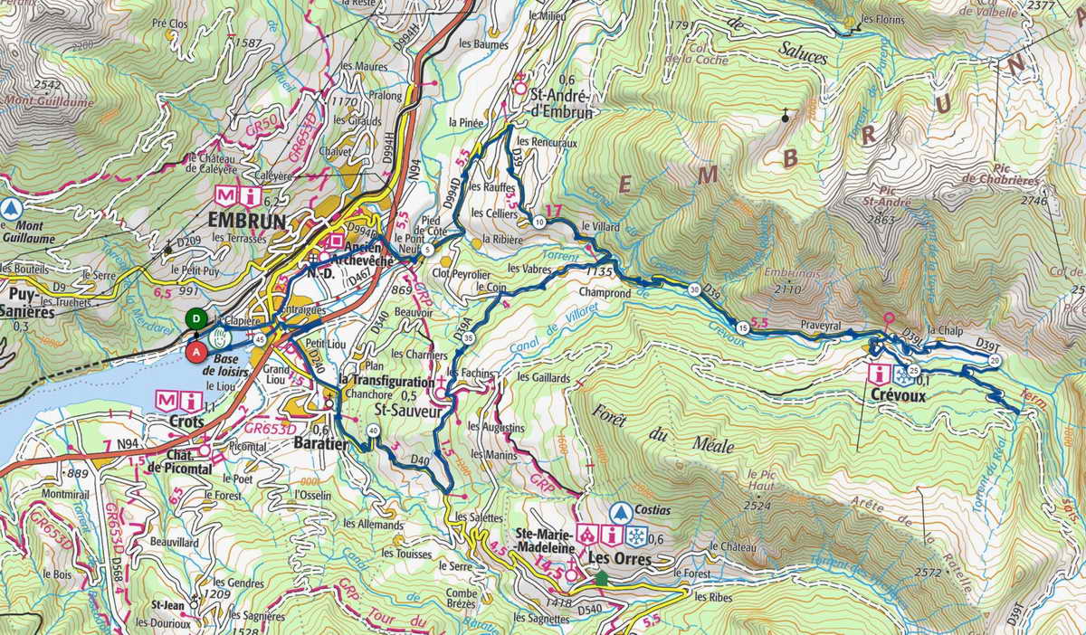 | Le tracé de la randonnée (63 jilomètres et 892 mètres de dénivelé) |