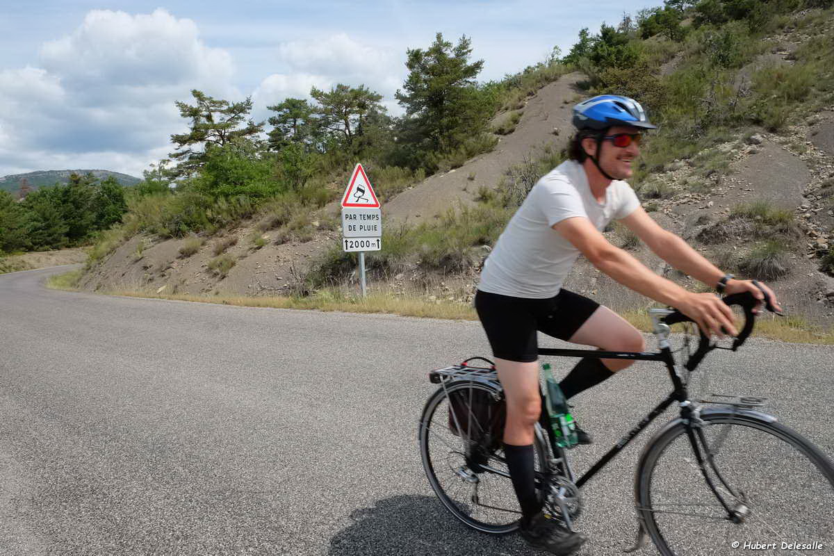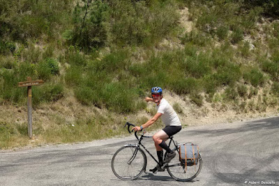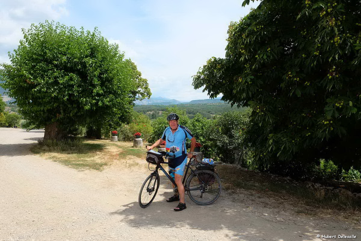 A Flassan, direction le sud vers Villes-sur-Auzon parmi les vignes et les cerisiers, le village perché de Blauvac que je grimpe par sa pente la plus raide (supérieure à 15%) avant de passer le