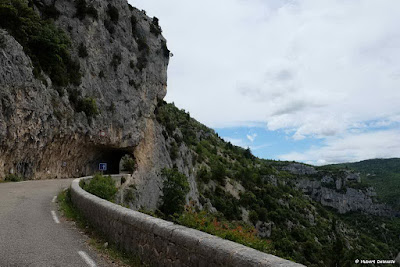 gorges de la Nesque, un canyon grandiose s’offre à mes yeux. Cette ancienne route de diligences, à flanc de rochers, comporte des aplombs vertigineux, à couper le souffle. Dans les gorges les tunnels sont de véritables arches de pierre. L’on devine, sous la végétation parfois luxuriante, le lit souvent asséché de la Nesque.