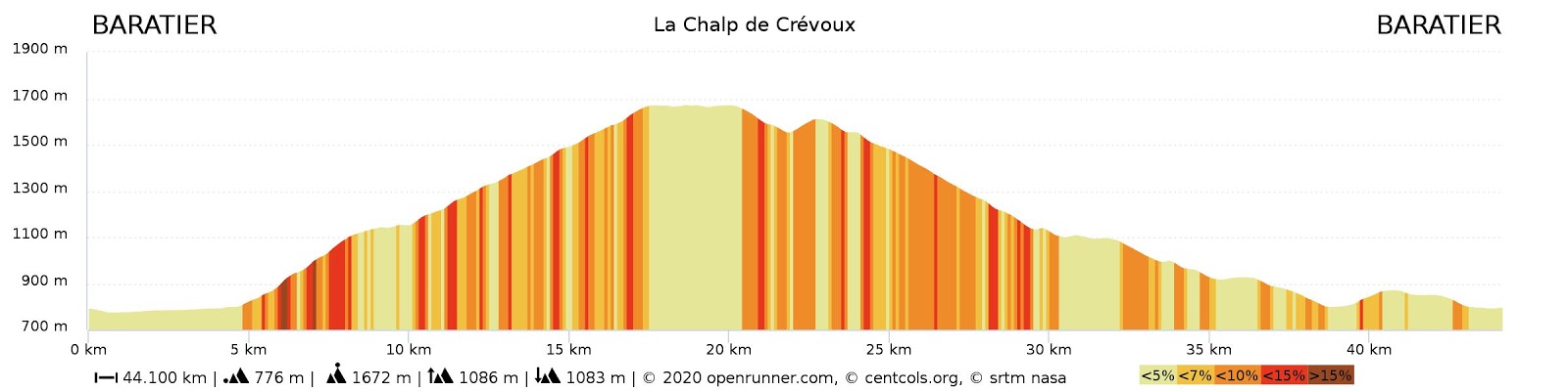 Je longe le plan d'eau d'Embrun pour rejoindre Baratier après avoir traversé la Durance par la nouvelle passerelle. Montée vers les Gaillards par la route des Orres et le hameau des Touisses. Arrêt au belvédère des Manins, le hameau des Gaillards et descente vers Saint-Sauveur Chef-lieu et la belle église de la Transfiguration