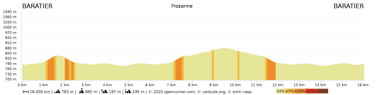 | Profil de la randonnée (32 km et 774 m de dénivelé) |