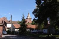 Le paysage est accidenté, succession de belles montées (et descentes !), nous franchissons les cols de la Roche (456m)  et Col de Lalléger (606m), le point culminant étant le petit  village de Saint-Goussaud (665 m). Nous traversons de beaux villages, en particulier celui de Jabreille-les-Bordes avec ses jolies maisons, sa  belle église montagnarde (XIIIe-XVe), son curieux porche avec son escalier en bois.