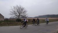 Notre randonnée de 54 kilomètres parcourue sous le ciel bleu, mais par un vent froid et hostile sur le retour  nous fait découvrir la partie occidentale du pays de Bergues Saint-Winoc. Nous sillonnons les chemins pittoresques de Bierne, Steene, Crochte, Socx, Bissezeele, Eringhem, Pitgam et le long des canaux de la Colme. Les rares pentes le long du parcours constituent les dernières traces de l’ancienne falaise côtière où la mer venait autrefois. Quand nous traversons le Looghweg, , au sud nous sommes  sur la "falaise", au nord sur les terres gagnées sur la mer, les polders les plus méridionaux des Pays Bas.