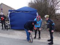 Un froid glacial et un vent de nord-est en ce samedi pascal, néanmoins, 424 cyclos répondent présents pour la 44ème Randonnée du Bois de la Houppe organisée par mon cher club, l'Union Audax de Tournai.