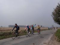 Très gris et humide lundi de Pentecôte, seulement 160/170 cyclos environ participent au brevet annuel organisé par l'Association Cyclotouriste Frelinghoise. (L'année dernière 422 !) A croire que les cyclos ne pédalent que sous le ciel bleu ! 3 parcours sont proposés, 30 60 et 90 km. Personnellement, j'opte pour le 60 kilomètres. Parcours très roulant et ultra plat qui nous emmène dans les Weppes jusqu'à La Gorgue…(Dommage, Les Monts de Flandres sont juste à côté et plus attrayants !)