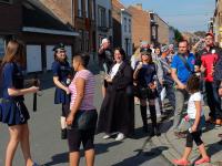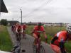 Ce samedi, je me rends à Tournai pour participer au Crazy Tour 2014 organisé par le club des Crazy-Wheels. 4 parcours sont proposés 50 km, 72 km, 90km et 105 kilomètres. , tous les parcours (de 50 à 105 km) sont à faire seul ou en groupe à constituer, à une allure libre. Grâce au concept unique « Follow Us », A 28 ou à 32 km/heure, les participants peuvent choisir leur moyenne horaire tout en se laissant guider par les membres du club Crazy Wheels. A 28 ou à 32 km/heure, on peut choisir sa moyenne horaire tout en se laissant guider par les membres du club Crazy Wheels. Ceci ne sera pas une course, juste une allure de peloton emmené par les membres du Crazy-Wheels revêtus de leur tenue spécifique et encadré par une une voiture suiveuse. Pour ma part, j'opte pour le 70 kilomètre … à mon allure, que je transforme d'ailleurs en 60 kilomètres, ce qui me permet de passer entre autres par le village de Velaines et sa fête.
