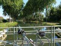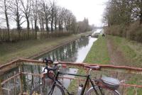 Retour de week-end à Hardelot, Charlotte me laisse au Pont d'Asquin (Wardrecques), au bord du canal de Neuffossé, sur la frontières des départements du Pas-de-Calais et de celui du Nord. Il me reste un petit 70 kilomètres de terrain plat pour retrouver mes pénates.